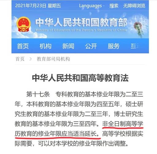 根据《中华人民共和国高等教育法》内容,今后非全日制高等学历教育的修业年限应当适当延长,并且有些大学已经开始动起来了!像上海电机学院非成人教育专科延长至3-4年毕业,本科3至5年毕业;南昌大学成考高起专建筑工程技术与机电一体化专业,已经由2.5年学制延长至3-4年。。。像这样的院校还有很多。